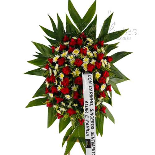 Coroa de Flores com Rosas Dobradas e Flor do Campo Lindo modelo de Coroa de flores padrão intermediário com flores nobres. *Flores não disponíveis ou fora de época serão substituídas por outras mantendo o mesmo padrão. Pra mandar essa Coroa de Flores Clique em Comprar Entregamos Coroa de Flores em todas Capelas Mortuárias de Curitiba e Região, incluindo os cemitérios: Cemitério Água Verde, Cemitério Municipal, Cemitério do Orleans, Cemitério Paroquial Campo Comprido, Cemitério de Santa Felicidade, Cemitério Jardim da Colina, Cemitério Parque Iguaçu, Cemitério Vertical, Cemitério Jardim da Paz, Cemitério Jardim da Saudade, Cemitério do Boqueirão, Cemitério Luterano, Cemitério Parque São Pedro, Cemitério Abranches, Cemitério Memorial da Vida, Cemitério Municipal Campina Grande do Sul, Cemitério Metropolitano, Cemitério Umbará, Cemitério Parque Senhor Bonfim, Cemitério São Francisco de Paula, etc. Incluindo as Capela Vaticano, Capela da Luz, Capela da PM, Capela Natalina Berti em todos locais de velório em Curitiba e Região Metropolitana. Delivery de Coroa de Flores em Curitiba Entrega Grátis em Curitiba Estamos funcionando normalmente neste período de combate à Covid-19. Sendo assim, todas as nossas entregas estão sendo realizadas de acordo com as normas de segurança da Organização Mundial da Saúde (OMS).